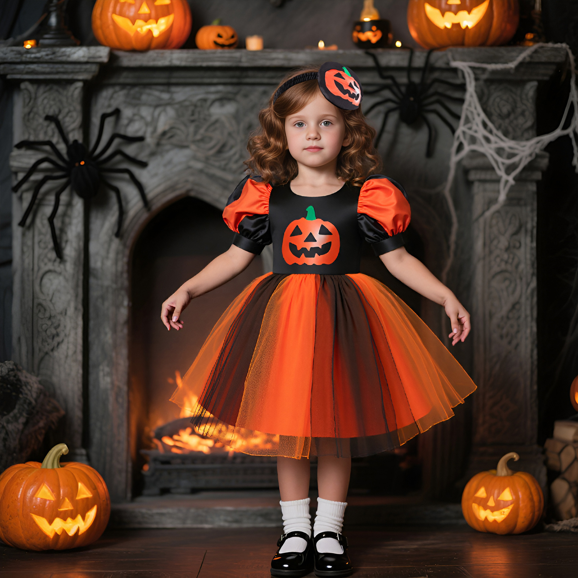 Girls’ Dress Halloween Lantern Sleeve Cosplay Children’s Dress Little Girl Tutu Tulle Skirt Wholesale